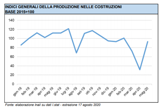 Tra marzo e maggio infatti l’indice destagionalizzato della produzione ha rilevato una contrazione del 41% del settore costruzioni rispetto al trimestre precedente. Giugno vede finalmente una buona ripresa dei lavori, segnati con un +0,5% rispetto al 2019.